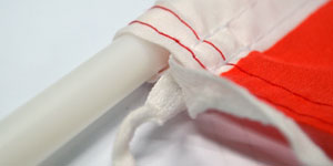 Sleeves are common for hand flags. The pole can easily slide on, and the top of the flag is usually sewn together to prevent the flag from sliding down.