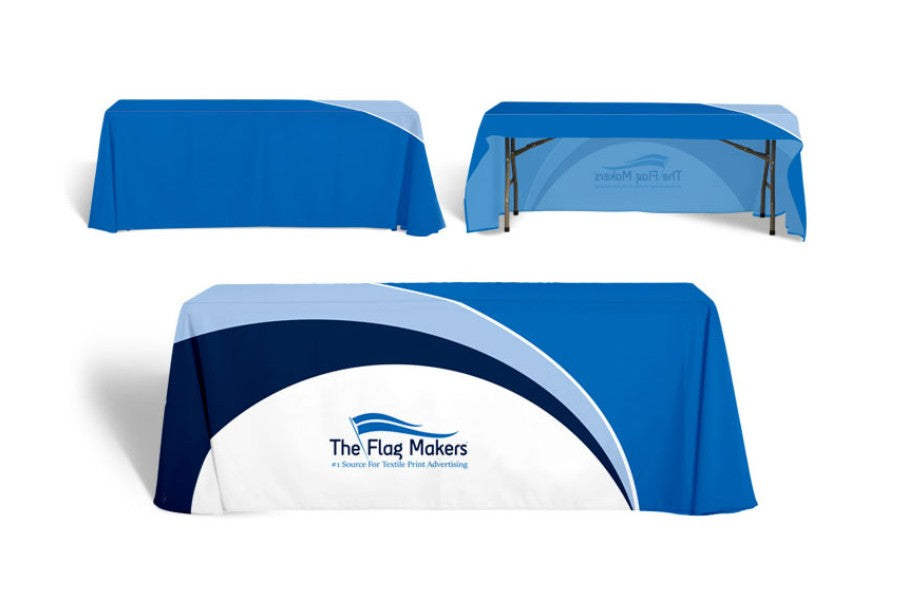 A plain old tablecloth is a great way to dress up those ugly, boring trade show tables, but enhancing a table with a plain piece of fabric is only half the story. If you really want to attract attention, you need custom trade show table throws from The Flag Makers.